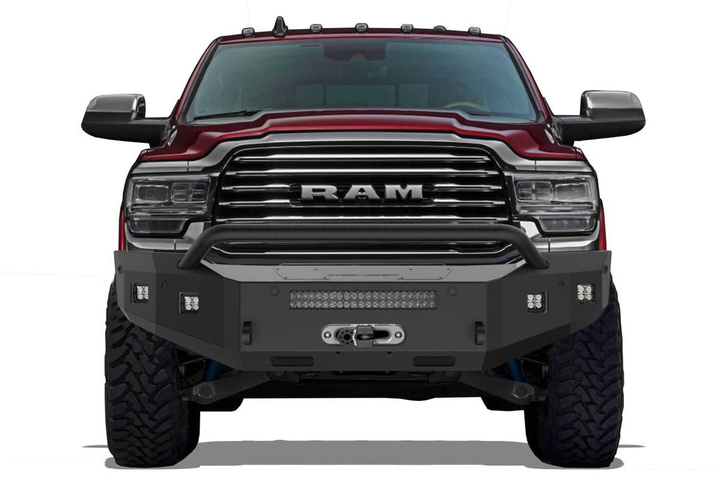 Fitment Notes: OE winch tray must be removed. Does not match 4500/5500 width of plastic flares. Factory tow hooks are removed and not re-used. Power Wagon must remove winch and winch tray brackets (if equipped)